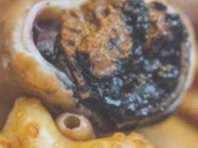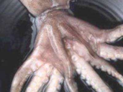 掀開八爪魚頭部,內臟全擠出,墨汁清洗干凈。